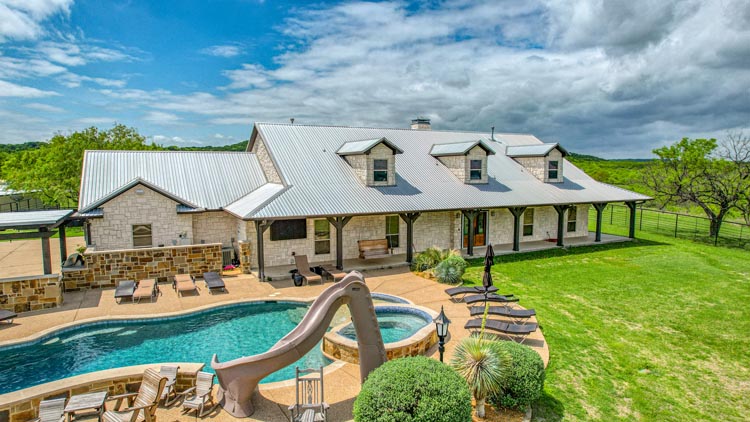 HUNT, FISH, SWIM, ENTERTAIN, and PLAY GOLF without leaving this highly improved 206 acres! Hunt GEMSBOK, ZEBRA, RED STAG, FALLOW, AOUDAD, MUFLON, IBEX, AND A VARIETY OF RAMS on this one-of-a-kind high fenced game ranch. The 4372 sq’ home-lodge opens to a luxurious swimming pool and entertainment area complete with outdoor kitchen. The ranch features 6 tee boxes overlooking 3 greens providing an 18-hole round of golf after your morning hunt!
